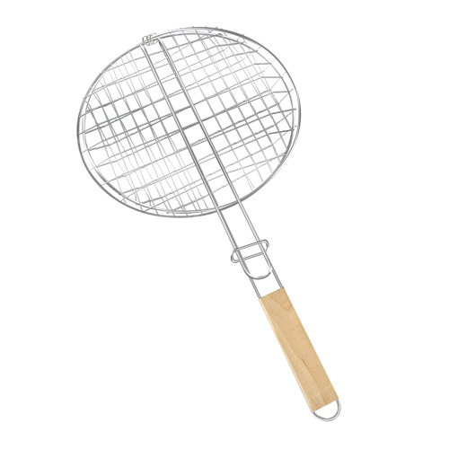 Manufacturer Round Long Handle Grilling Net Metal Portable Grill Barbecue Basket Wire Mesh BBQ Grid